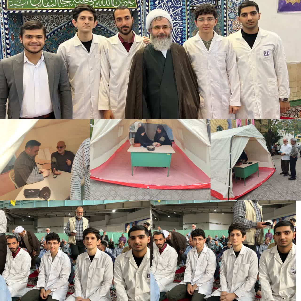 گروه جهادی بسیجیان جامعه پزشکی با برپایی ایستگاه سلامت در محوطه مصلی نمازجمعه خدمات سلامت به نمازگزاران ارائه نمودند.