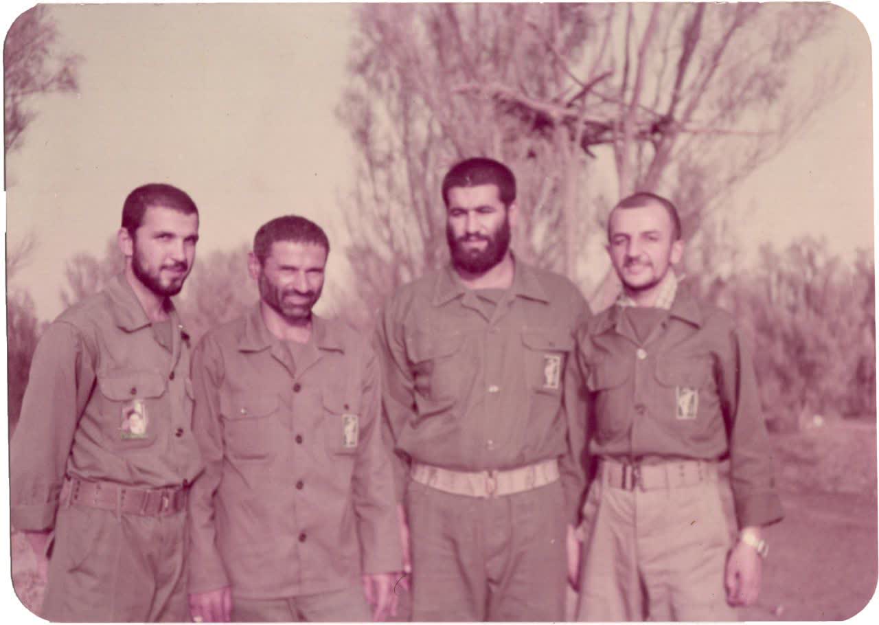 در این قاب ماندگار، سردار شهید حاج حسین بصیر در کنار یاران و همرزمانش ایستادهاند. اسامی این بزرگواران به ترتیب از راست به چپ به شرح زیر است: سید احمد جعفری، سردار شهید یوسف سجودی، سردار شهید حاج حسین بصیر، علی امانی