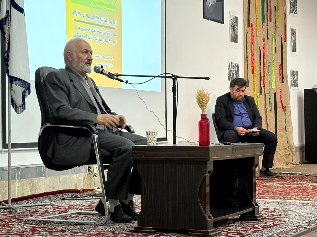 وی با تبریک میلاد خجسته بیبی دو عالم حضرت فاطمه زهرا(س) به برادران و خواهران حاضر در مراسم، به اهمیت و جایگاه روز دانشجو اشاره کرد و افزود:شانزدهم آذر سال ۱۳۳۲، نقطه عطفی در تاریخ جنبش دانشجویی ایران است؛ روزی که مبارزه با استکبار جهانی بهویژه آمریکای جهانخوار و استعمار پیر انگلیس پررنگتر شد و مزدوران رژیم ستمشاهی با یورش به دانشگاه، سه تن از دانشجویان مبارز را به شهادت رساندند.