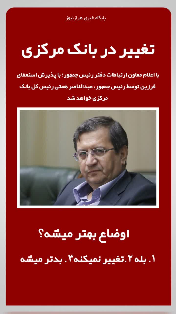 تغییر در بانک مرکزی همتی جایگزین فرزین میشود راهبری نوشته آقای وزیر جاده جایگزین سد هراز چی بیه ؟ هادی ساروی نامزد برترین ورزشکار سال جهان شد