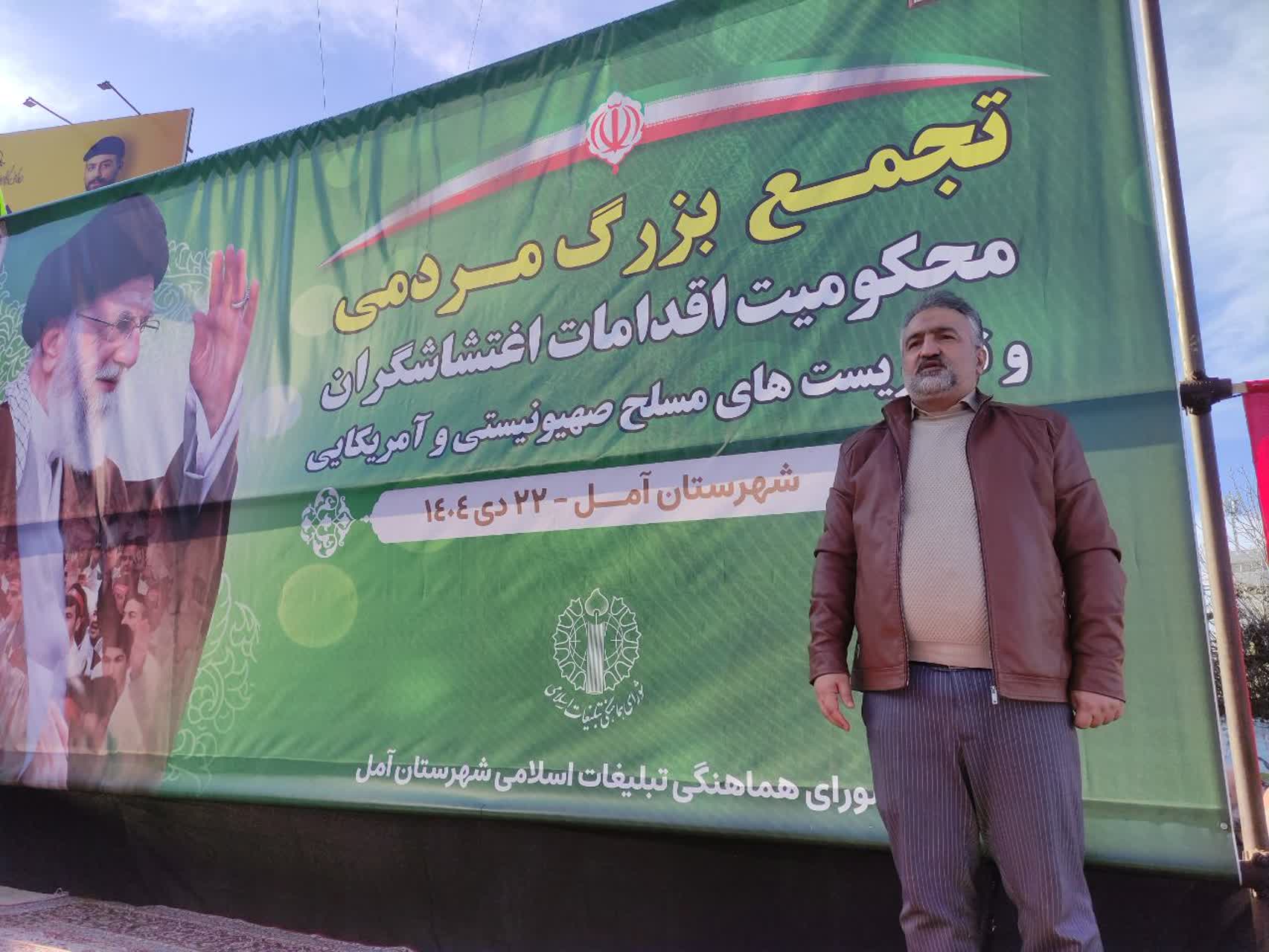 به گزارش هراز نیوز : در راستای جنایات سخیف عوامل استکبار جهانی و رژیم غاصب صهیونیستی در به شهادت رساندن جمعی از هموطنان عزیز و ایجاد آشوب و اغتشاش در شهرهای کشور عزیز ایران اسلامی مردم همیشه در صحنه و یاوران ولایت و رهبری در اجتماعی بی نظیر در میدان 17 شهریور آمل روز دوشنبه 22 دی ماه  1404 ضمن حمایت از مقام معظم رهبری  و تجدید میثاق با آرمانهای والای شهیدان گلگون کفن خشم و انزجار خود را از آمریکای جنایتکار و رژیم صهیونیستی اعلام و بر برخورد قاطع و سریع با عوامل مزدوران و اغتشاشگران و آشوبگران تاکید کردند .