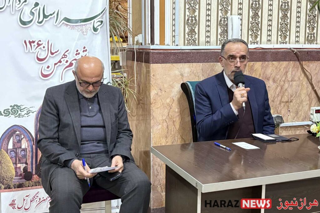 همچنین در این مراسم، حاج احمد کوهستانی از حماسهسازان ششم بهمن و جنگل آمل، ضمن تبیین شرایط سیاسی کشور، به نقش آگاهیبخشی مردم و بصیرت انقلابی در خنثیسازی توطئههای دشمنان اشاره کرد.