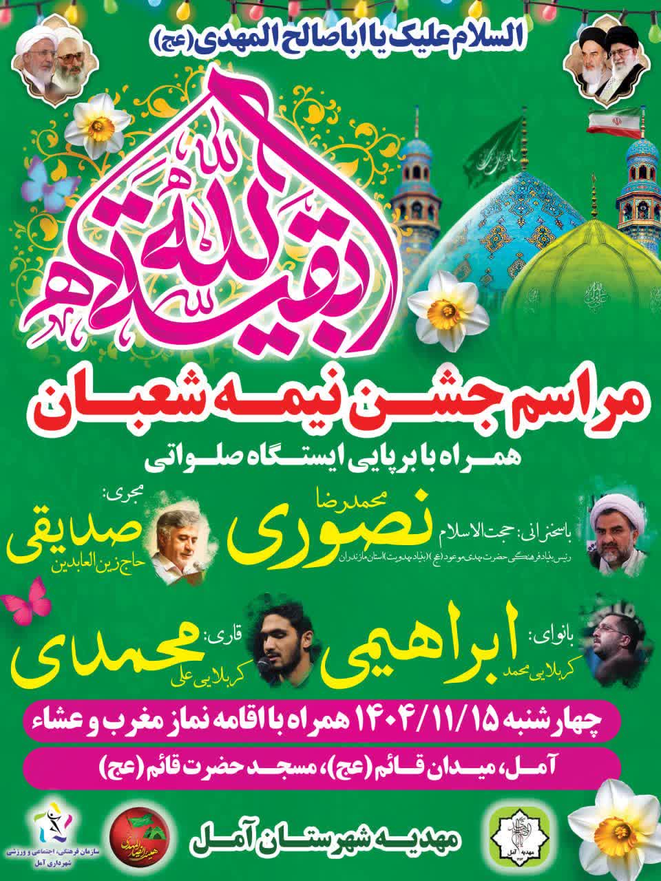 به گزارش هراز نیوز : در خجسته سالروز ولادت با سعادت یگانه منجی عالم بشریت حضرت صاحب الامر امام زمان ( عجل الله تعالی فرجه و الشریف ) مراسم ویژه جشن آن امام همام توسط مهدیه شهرستان آمل و هیئت مذهبی انصار المهدی ( عج ) این شهرستان با خیر مقدم گویی حجت الاسم سید مجید حسینی رییس اداره تبلیغات اسلامی آمل و سخنرانی حجت الاسلام نصوری معاون بنیاد فرهنگی حضرت مهدی موعود ( عج ) کشور و رییس بنیاد مهدویت استان مازندران و با حضور دوستداران و مشتاقان به حضرت امام زمان ( عج ) همراه با اجرای گروه سرود و برپایی ایستگاه صلواتی و پذیرایی از مهمانان شرکت کننده روز چهارشنبه15 بهمن 1404 بعد از نماز مغرب و عشاء در مسجد قائم ( عج ) شهرستان آمل برگزار شد.